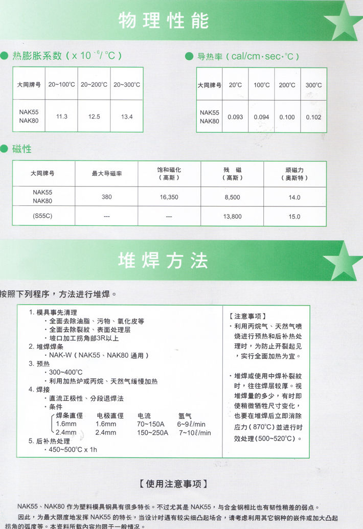 日本大同NAK80:高鏡面型40HRC級預硬鋼