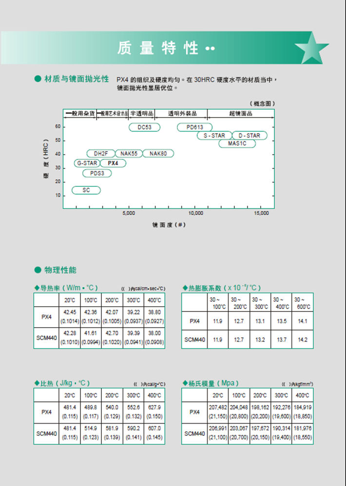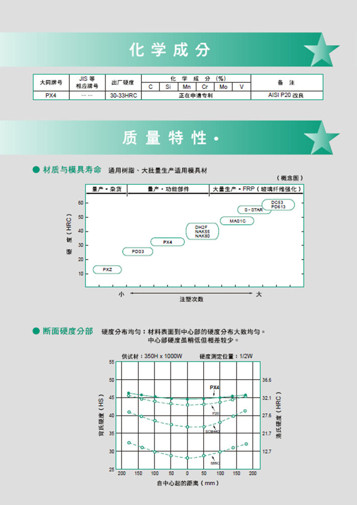日本大同PX4塑料模具鋼:通用預硬鋼(30HRC)
